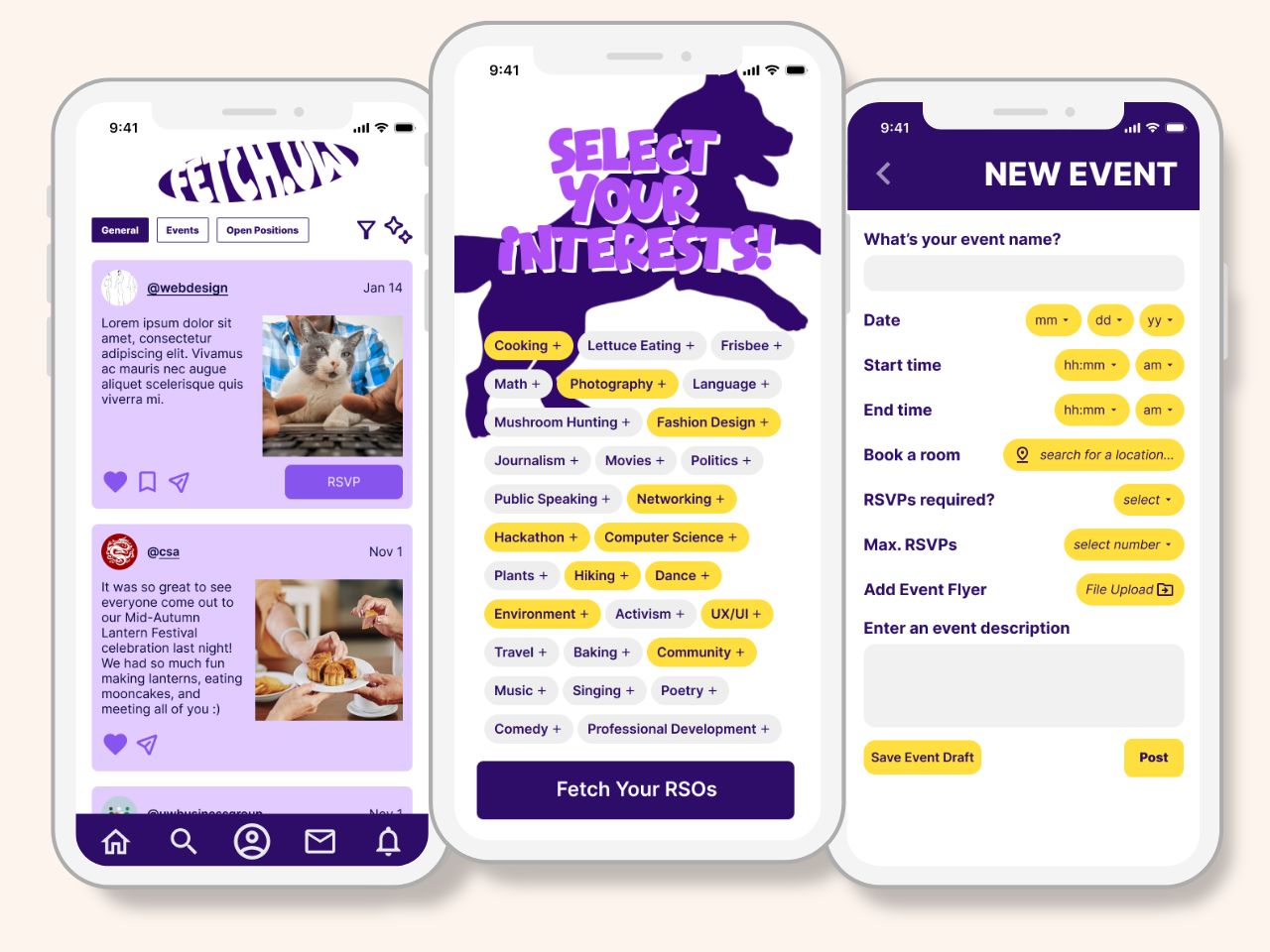 I designed FetchUW, a mobile app that centralizes RSO management and student engagement. Clubs can easily promote events, track memberships, and communicate with students all in one place.