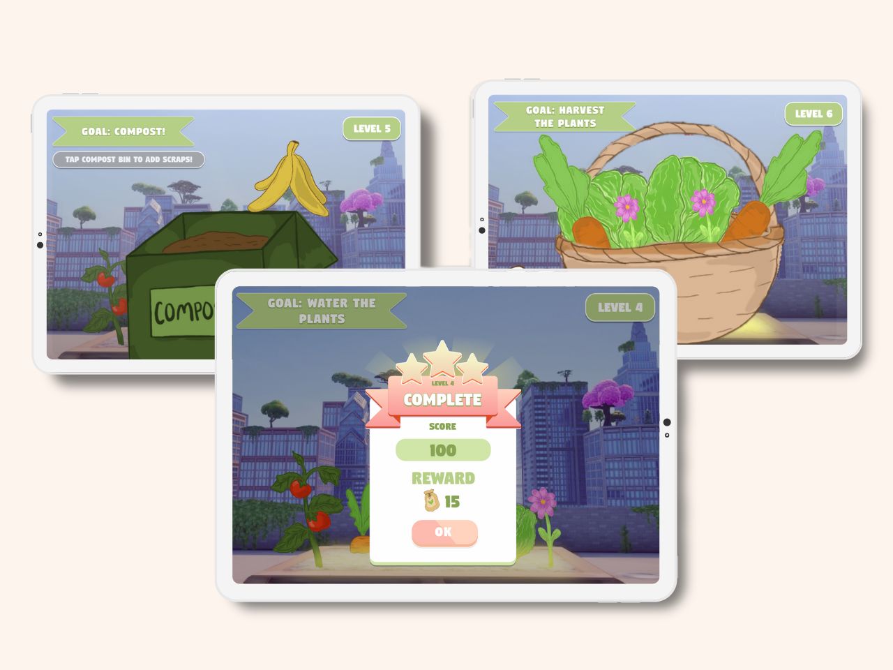 A tablet game for kids to restore and take care of a virtual urban garden.