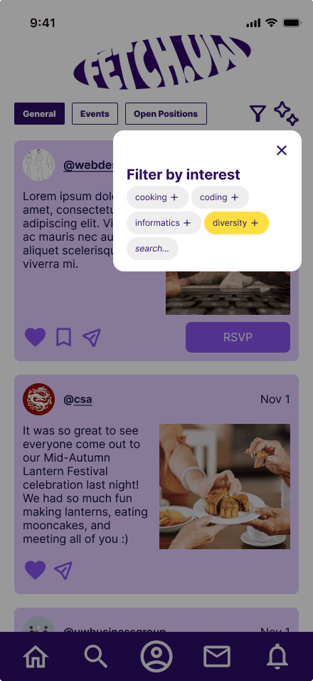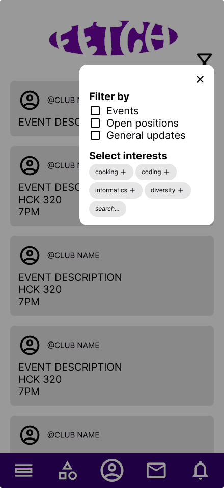 Using findings from my expert interviews and user survey, we developed user personas that represent FetchUW’s target audience, ensuring the design addresses both student engagement and club management needs.